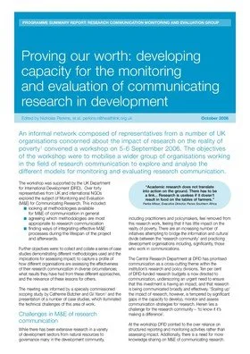 Proving our worth: developing capacity for the monitoring and evaluation of communicating research in development: developing capacity for the monitoring and evaluation of communicating research in development, Healthlink Worldwide for IIED (2006).